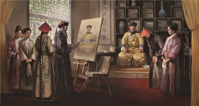 叶献民 郎世宁与中西画的融合 油画 180cm×333cm