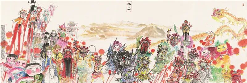 杨晓阳 丝绸之路——甘肃苦水社火 国画 129cm×1308cm