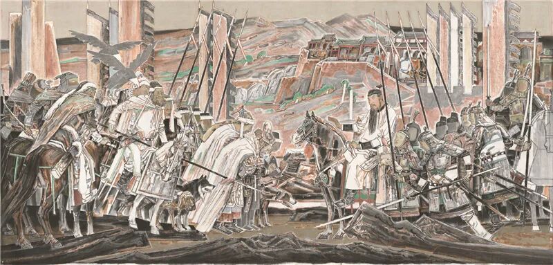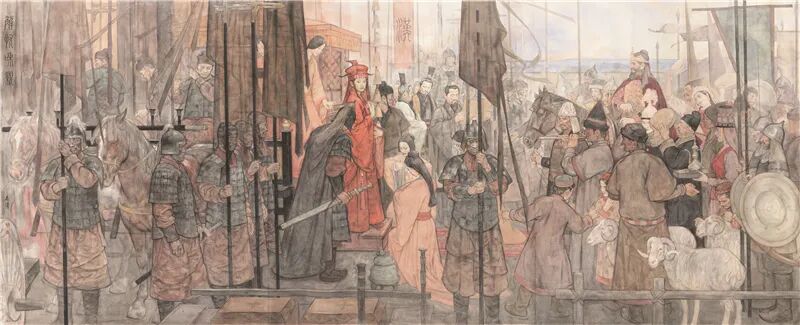 于新生 郭子仪卸甲降回纥 国画 246cm×511cm