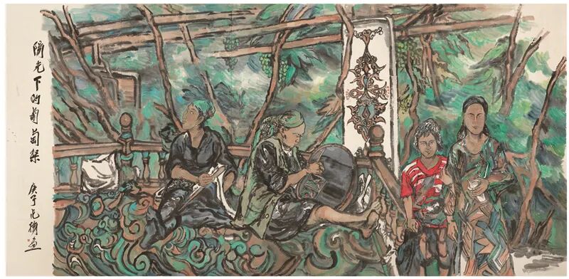 范扬 阳光下的葡萄架 国画 246cm×504cm