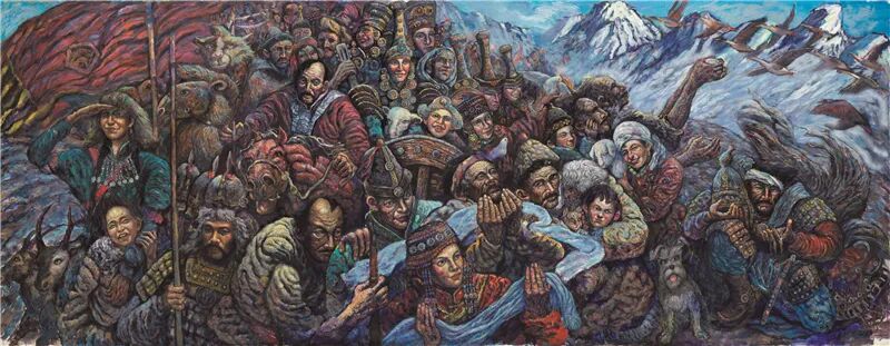 周勇(美国) 中国地——蒙古东归印象 油画 213cm×549cm