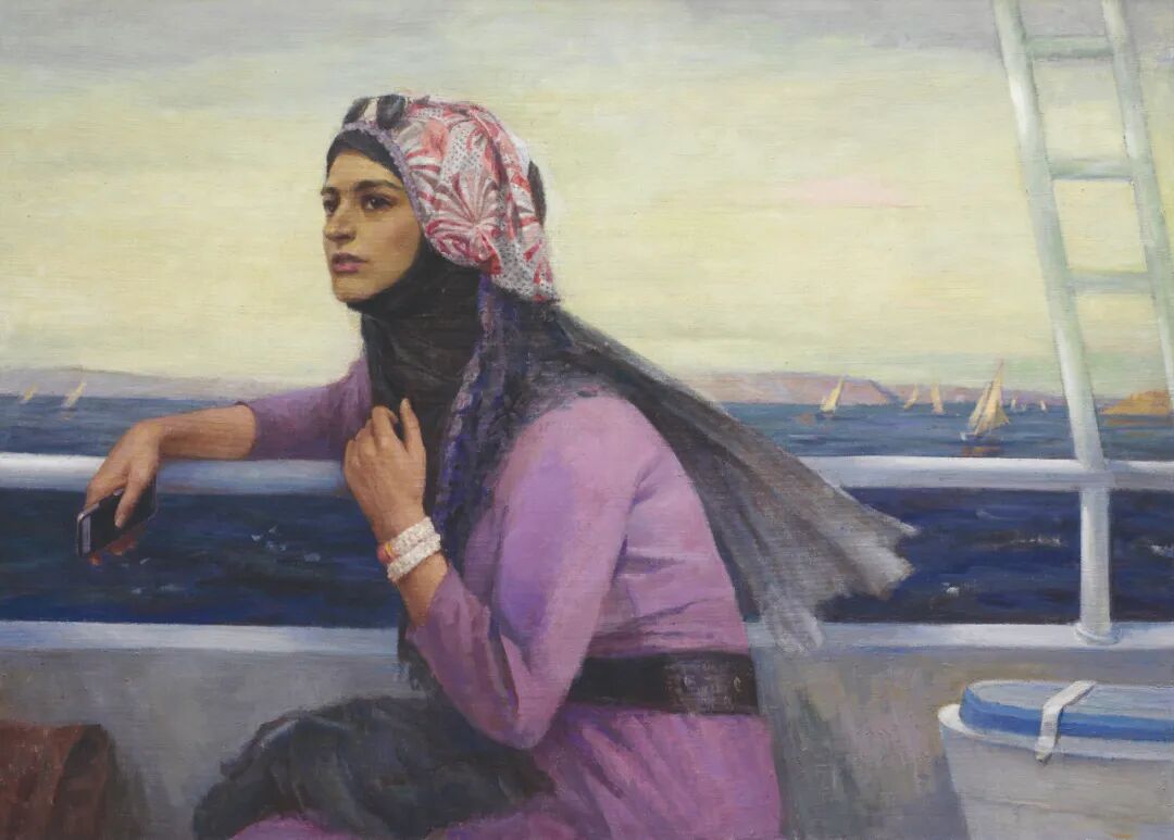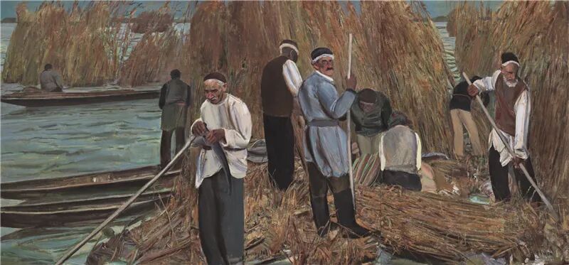 迪尔绍德·阿兹佐夫 (乌兹别克斯坦) 港湾商队 油画 202cm×600cm