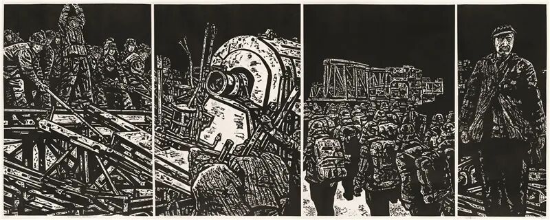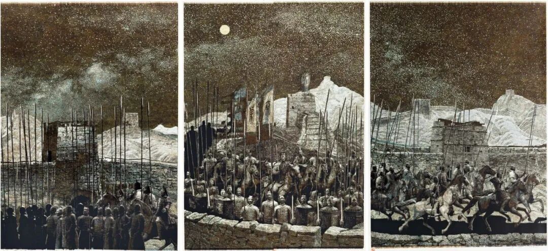 卢雨 蒙恬屯边 版画 201cm×143cm×3
