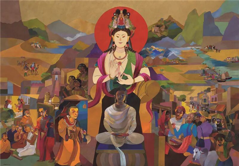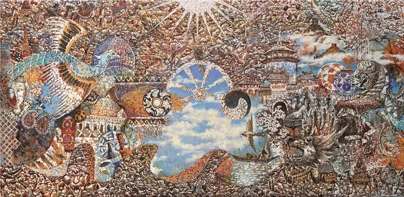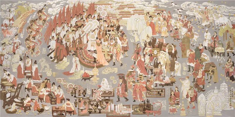 尼仁(印度) 丝绸之路:旅行、战斗和信仰 油画 250cm×360cm