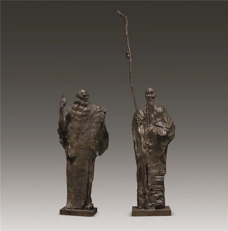 吴为山 超越时空的对话——意大利艺术大师达·芬奇与中国画家齐白石 雕塑 72cm×40cm×348cm(齐白石)96cm×47cm×223cm(达·芬奇)
