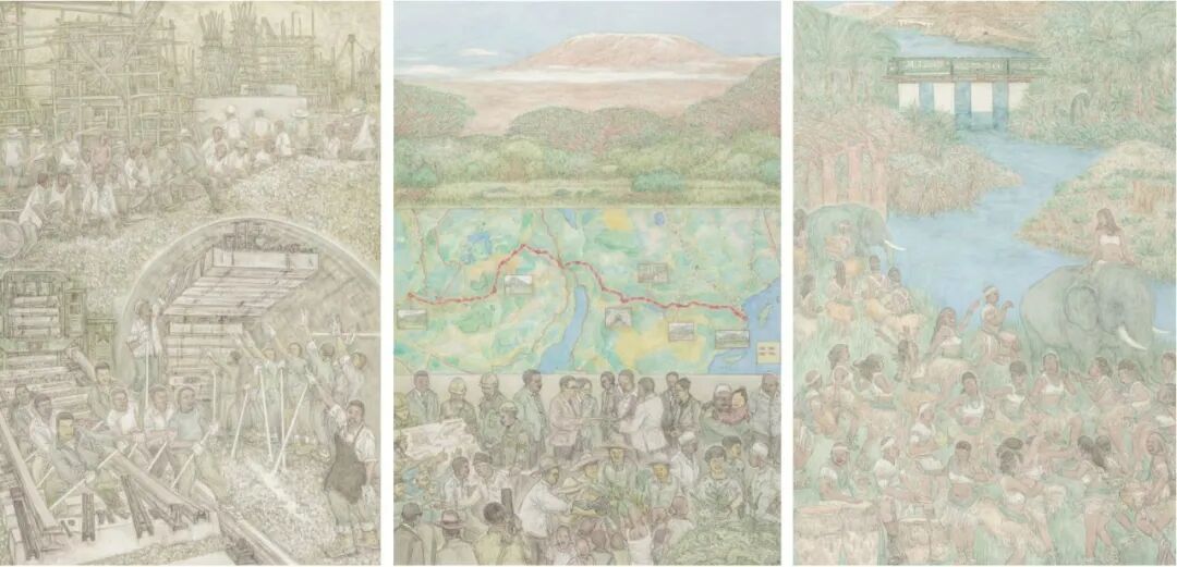 王煜 自由之路——坦赞铁路 国画 204cm×139cm×3