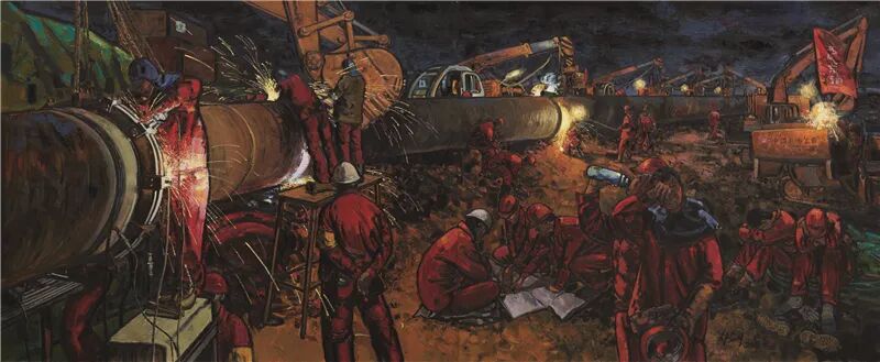 郑剑 西气东输之奋战者 油画 180cm×420cm