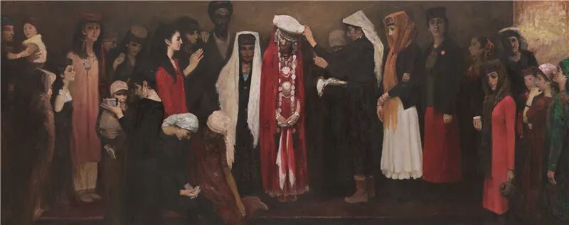 文国璋 塔吉克闺房里的新嫁娘 油画 200cm×500cm