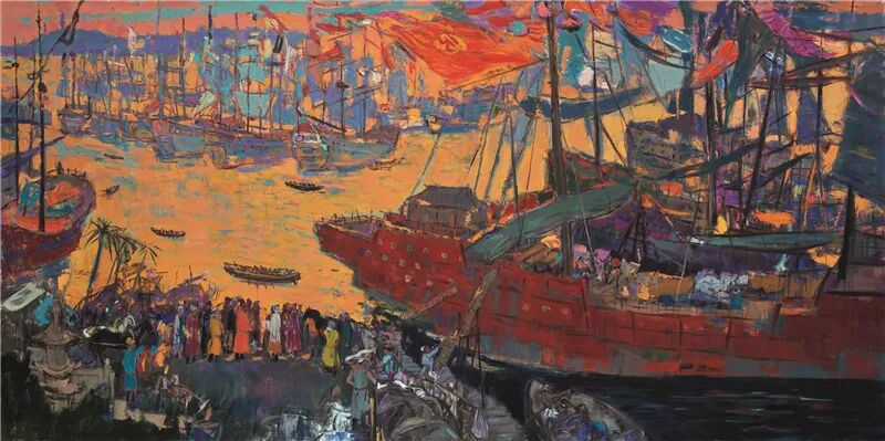 张立平 涨海声中万国船——元代泉州港 油画 190cm×380cm
