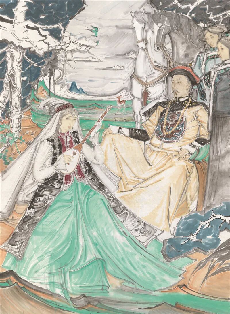 张望 清乾隆帝弘历与香妃 国画 260cm×197cm