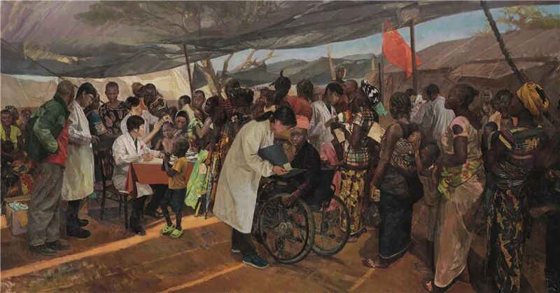陈宜明、郭健濂 中国援非医疗队 油画 235cm×450cm