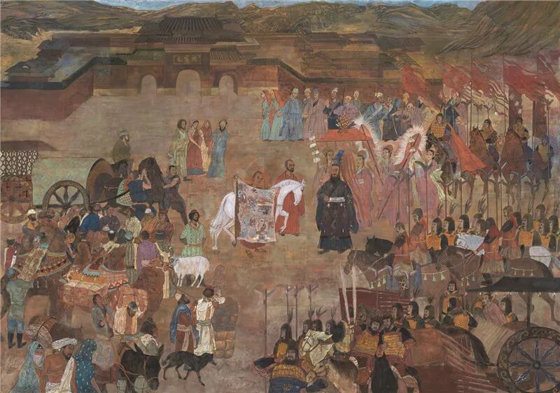 赵奇 汉武帝经略西域 国画 202cm×193cm×3