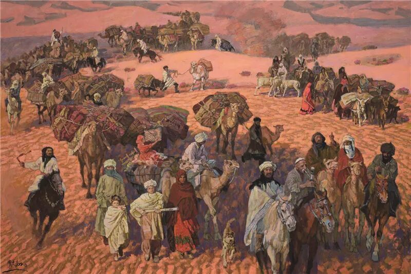 安德烈·格朗齐(意大利) 上坡的旅程——丝绸之路的绘画 油画 381cm×273cm