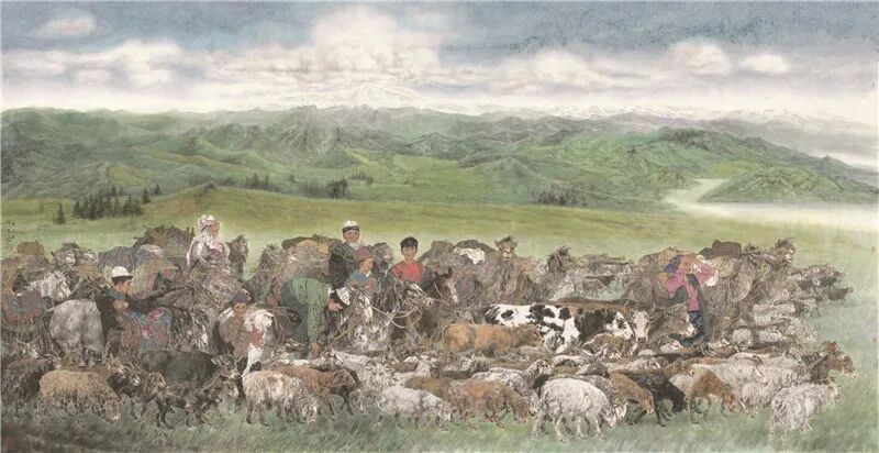 蔡超 美丽草原我的家 国画 192cm×292cm