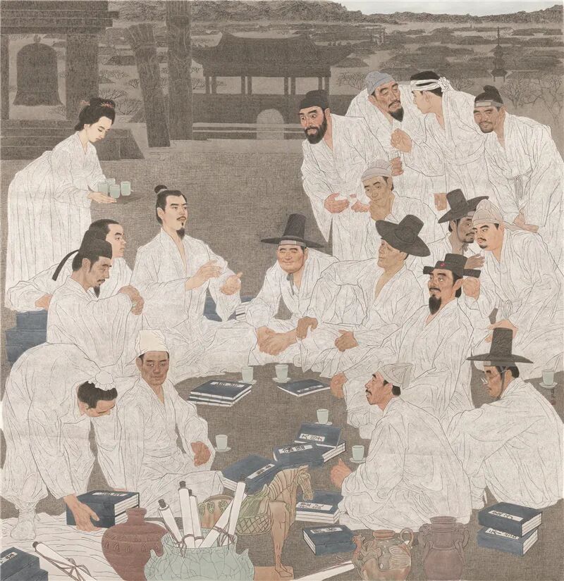 李雄范 古朝鲜学者崔致远入中原交流 国画 304cm×290cm