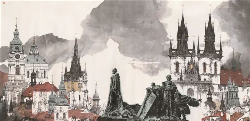 何加林、叶欣辰 威尼斯 国画 144cm×364cm