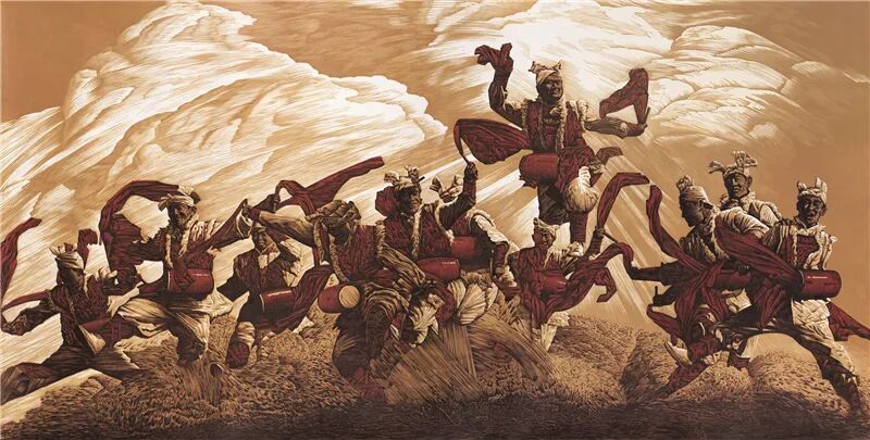 马勇、隋东亮、马川、郑小强 佛教东传 版画 180cm×454cm