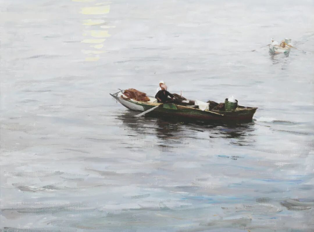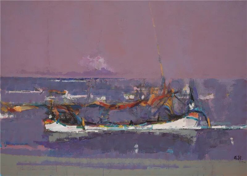 张祖英 尼罗河船工曲 油画 90cm×160cm