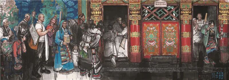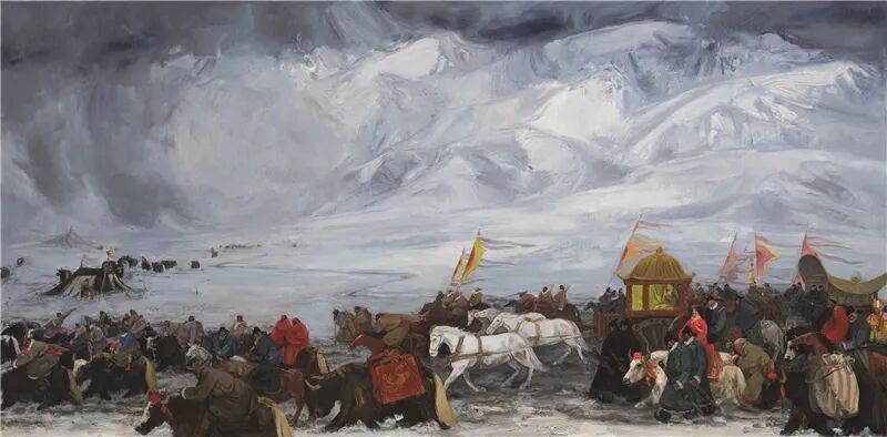 尼玛泽仁、德西央金 文成公主入藏图 国画 209cm×420cm