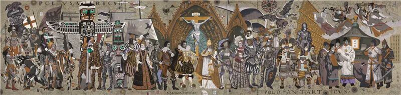 卢志强 传教士与东西文化交流 国画 246cm×665cm