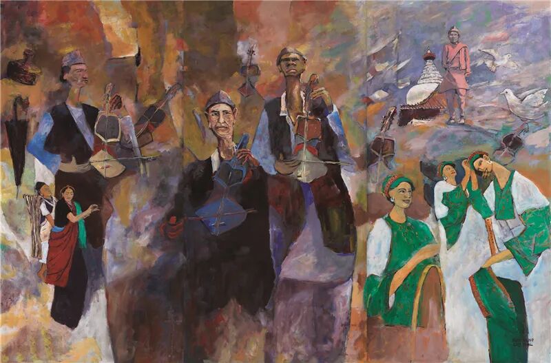 布帝·顾朗(尼泊尔) 甘达瓦人和萨伦吉琴 油画 200cm×300cm